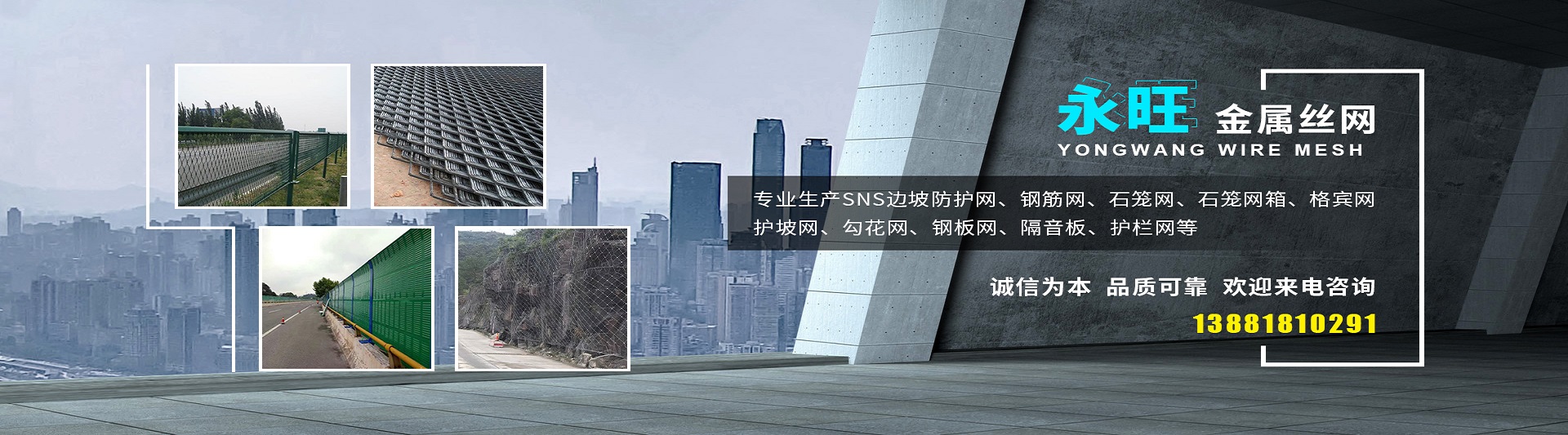 服務熱線: 成都市永旺金屬絲網(wǎng)有限公司是一家研發(fā)、生產、加工、銷售為一體的責任制企業(yè)公司。本公司“以誠信為本、以服務社會已任、以科學創(chuàng)新為理念”。 專業(yè)生產SNS邊坡防護網(wǎng)、鋼筋網(wǎng)、石籠網(wǎng)、石籠網(wǎng)箱、格賓網(wǎng)、護坡網(wǎng)、勾花網(wǎng)、鋼板網(wǎng)、隔音板、護欄網(wǎng)等。產品主要運用于鐵路,高速公路,橋梁,隧道,機場,礦山,河道,球場,碼頭,港口等多個領域。 本公司期待與您長期合作,希望與您共創(chuàng)輝煌,我們愿與各業(yè)朋友精誠合作,共創(chuàng)美好未來,希望各業(yè)朋友來函來電